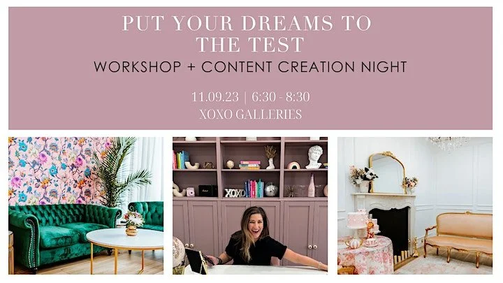 YOU’RE INVITED! THIS THURSDAY is our Put Your Dreams to the Test Workshop + Content Creation at XO Galleries, and I would LOVE to have you there!
